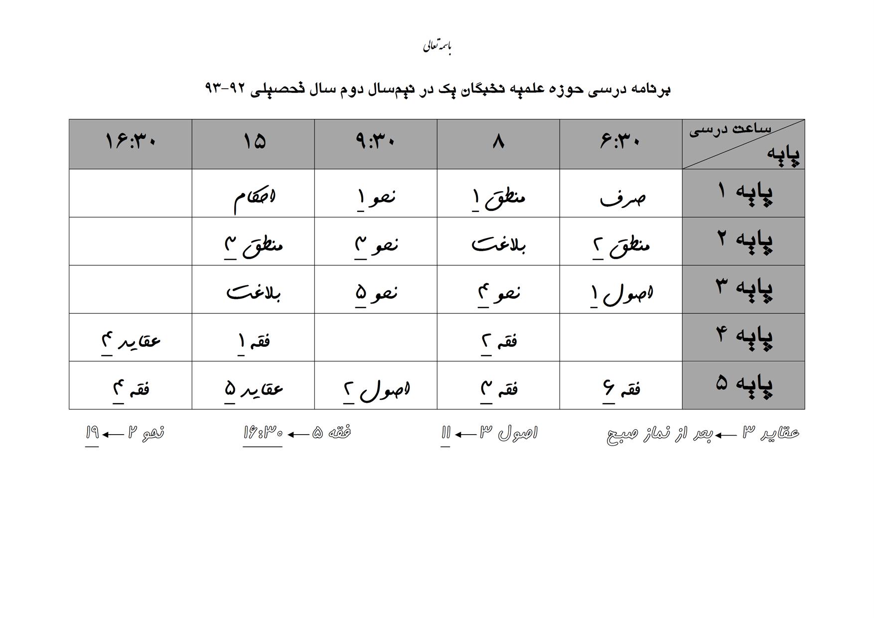 با توجه به نزدیک شدن زمان امتحان نوبت نیمسال نخست، برنامه امتحانی پایههای مختلف این حوزه به این شرح اعلام میشود.